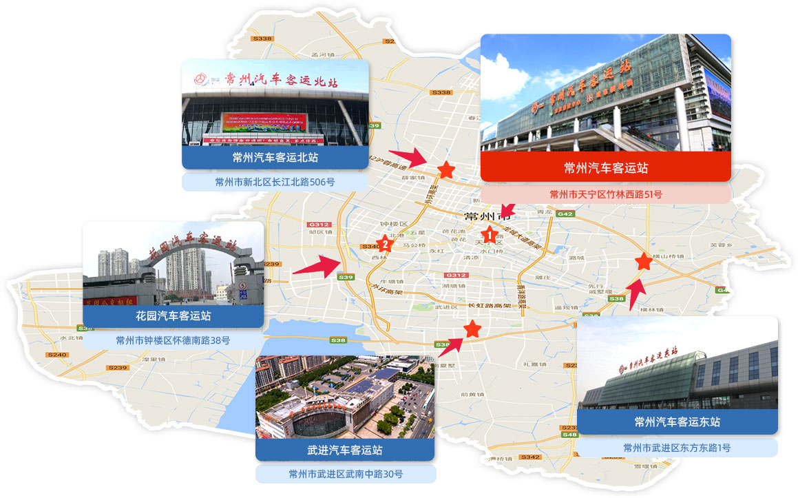 常州汽車客運(yùn)站于2010年建成,地處常州北大門(mén),是集高鐵、地鐵、公交為一體的綜合樞紐客運(yùn)站。車站擁有11000平方米的候車、售票廳和32600平方米停車場(chǎng),內(nèi)設(shè)售票窗口5個(gè),檢票窗口30個(gè),是常州地區(qū)最大的公路客運(yùn)站。